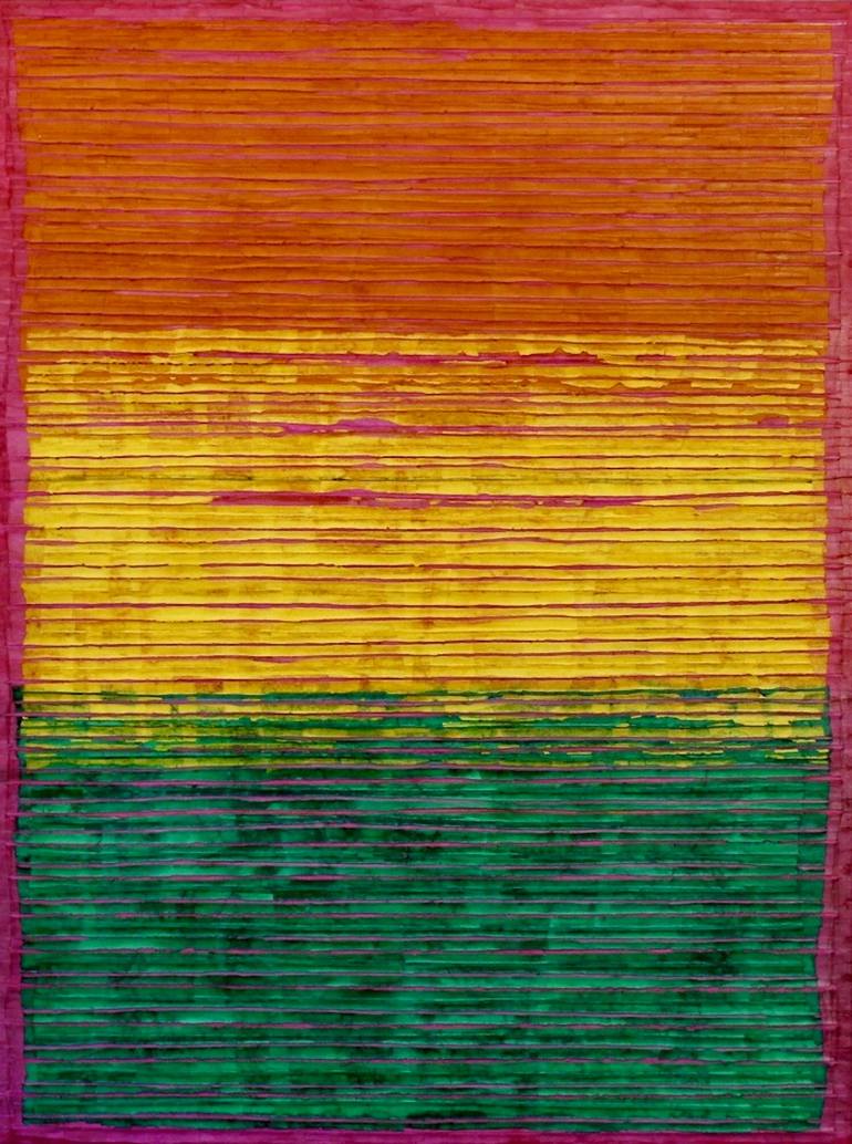 I make abstract paintings with paper. Through my work, I aim to create paintings that are profound, contemplative, meditative, and evocative. Heavy and dense textures created by lines and patterns from stripped layers of paper reveal a sense of decorum and order, juxtaposed with loosely and freely d...