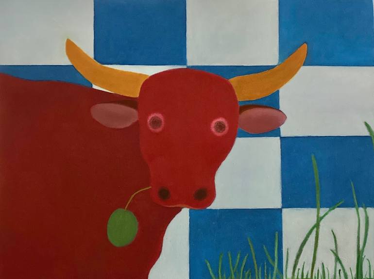 A celebrity...me!? This work is initially inspired by the drink called Red Bull and my interpretation using shapes and colours to amuse. Signed/dated on the reverse and ready to hang.