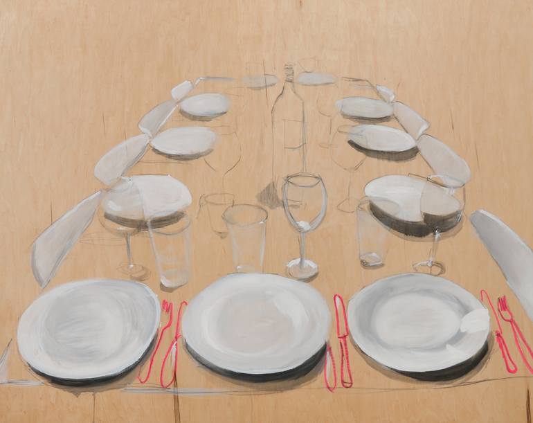 Explore “A Table (2),” a unique contemporary piece by artist Adrianna MJW. This mixed media artwork on wood, measuring 125 cm x 100 cm x 5 cm, captures the essence of human interactions around the dining table, a shared space filled with memories. Inspired by themes of presence and absence, this com...