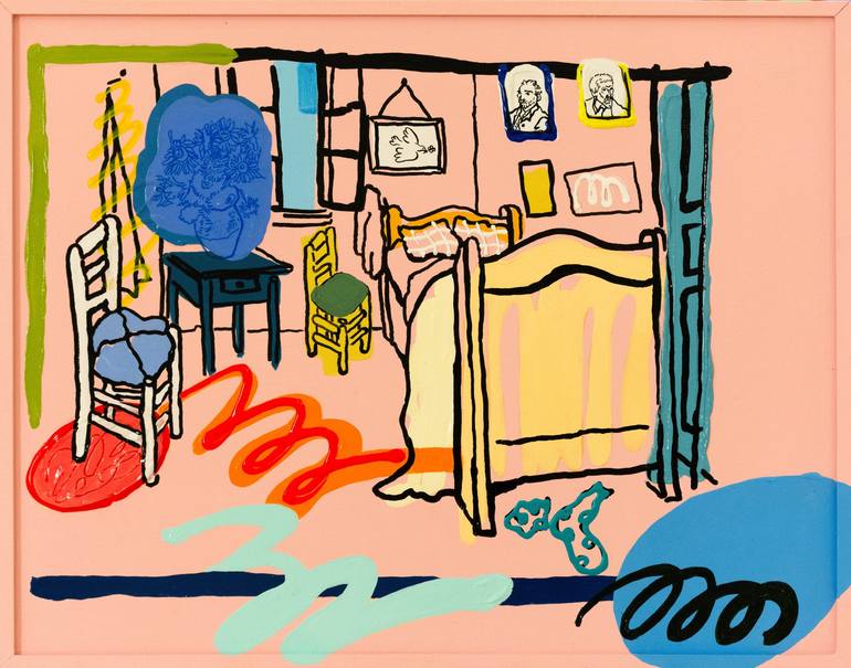 Esther Kim is a South Korean Canadian raised in Vancouver, currently a Toronto-based artist. She majored in a Bachelor of Fine Arts from OCAD University (Ontario College of Art and Design University). Kim's works scrutinize the idea of gratitude on mundanity, delivering a sense of picturesque happiness—a celebration of a tedious moment. She explores simple, flat forms to encompass expressive, whimsical, calm, and joyous moments with her vibrant and pastel colour palettes. Her art practice is instinctive, schematic, almost childlike, represented by her simplified yet precise forms, shapes, and lines. To the simplification and abstraction in her art-making, Kim adds soft colours to bring a sense of tranquillity and vibrant colours to deliver a sense of energy and power. She shares her genuine gratitude for life and surrenders contemplation and tension, exploring the idea of family, home, and nature. Her works are an outlet of comfort, an undemanding space of serenity.