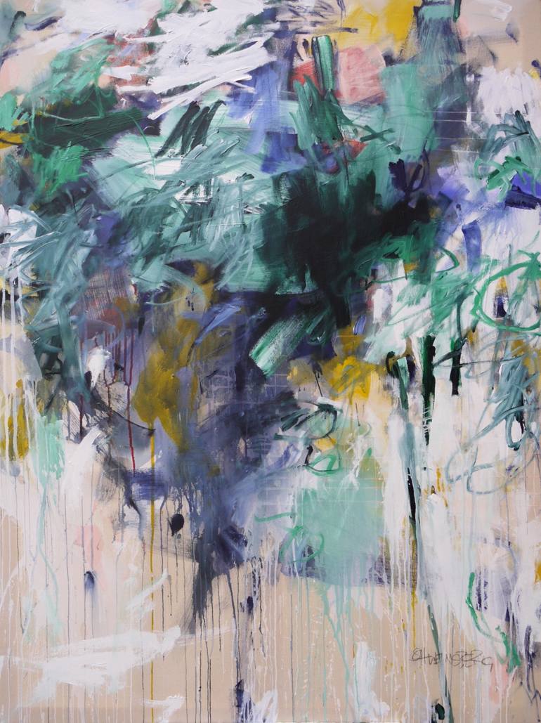 "Powerful, dynamic, and full of energy. With an intense vibrancy that touches and moves the viewer directly – that’s how I would describe my paintings in two sentences. My work is an expression of vitality and inner strength. It thrives on contrasts and tension: The viewer enters a dynamic interplay of chaos and order, impulse and control, lightness and depth. As an artist, my goal is to release energy and spark impulses in the viewer that extend beyond the canvas. Through the visual power of my work, a space emerges where perception and emotion connect: The viewer responds not only rationally, but emotionally. The energy, dynamism, and expression of the paintings immediately engage the viewer and unfold their impact – both in the surrounding space and within. Artistic creation is, for me, a space of freedom and expression – a place where I follow my intuition and give shape to imagination. It fulfills me to create something new, unique works that have never existed before. Painting is a vibrant, creative process that continually challenges, inspires, and excites me. I usually begin spontaneously – from a mood, an impulse, or the desire to work with a specific color or technique. In dialogue with the painting, a story begins to unfold – shaped by the works expression, form, and the emotions it evokes. External influences also flow into this process: personal themes, social trends, current affairs – all of it is interconnected. With my titles, I try to capture this story without limiting the viewer’s freedom of interpretation. On the technical side, I explore contrasts and bring them into dialogue: color meets non-color, line meets area, light meets darkness, emptiness meets fullness. These fields of tension are my experimental ground. I often work in large formats because I need space – space for movement, for energy, for the unpredictable. Every brushstroke is a decision, every moment an impulse. It is an intense, physical process in which I surrender to the flow while consciously shaping it. Although my works are abstract, they evoke associations. Some recall nature, landscapes, or the sea – places that ground us and help us reconnect with ourselves, places essential to our being. Others suggest emotional spaces tied to feelings like safety, love, or comfort. My paintings do not depict but suggest – creating and leaving room for personal associations.