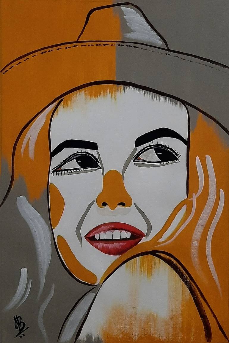 A Yellow Portrait - Smiling, painting acrylic on canvas ( 2 inches ) margin left on all 4 sides for perfect framing Inner Size of painting - ( H24 x W16 inches ) Materials used are Acrylic on canvas. PAINTING will be delivered in rolled format. Need to be framed for hanging on wall. The painti...