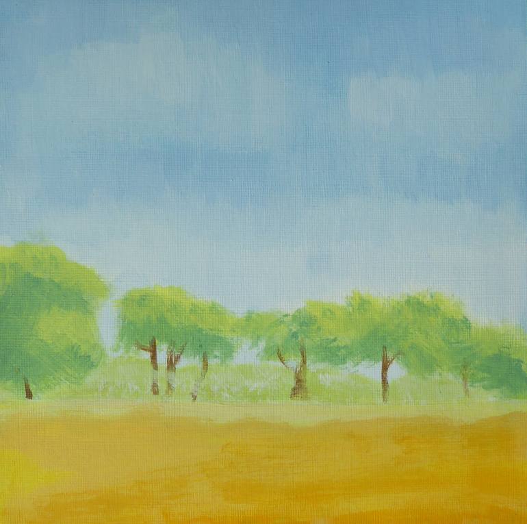 Imagine a sun-drenched summer landscape, captured in this original acrylic painting, "A blinding sunlight day". The artist beautifully conveys the feeling of a warm, breezy day in nature, a moment of pure freedom and joy. The simple color palette evokes the essence of summer. Painted with acrylics ...