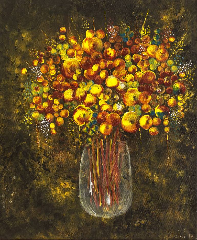 This painting represents the cells in everything including in the flowers. It is a bouquet of cells! Suitable for displaying in any room of the house.