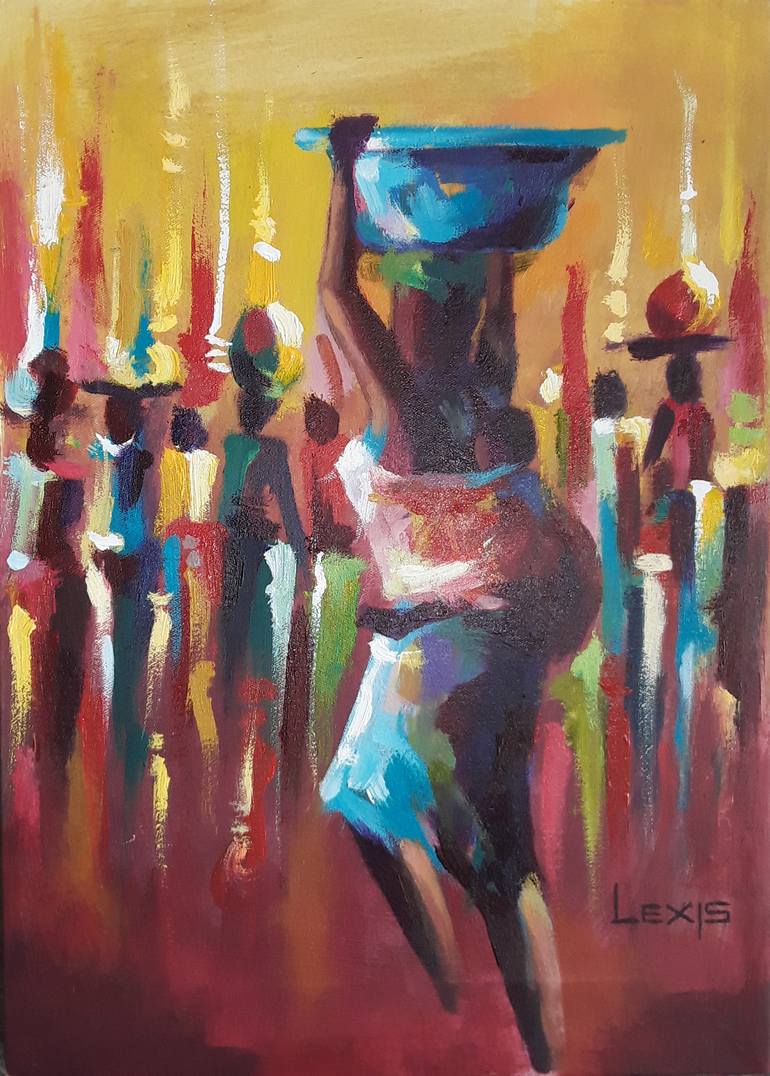 This painting is inspired by the realities of this life. Everybody seems to be too busy minding their own business. Buying, selling, household errands etc. Families bonds are weakening by the day due to the pressures of life. The need to make money seems to take the center of our lives, so much so t...