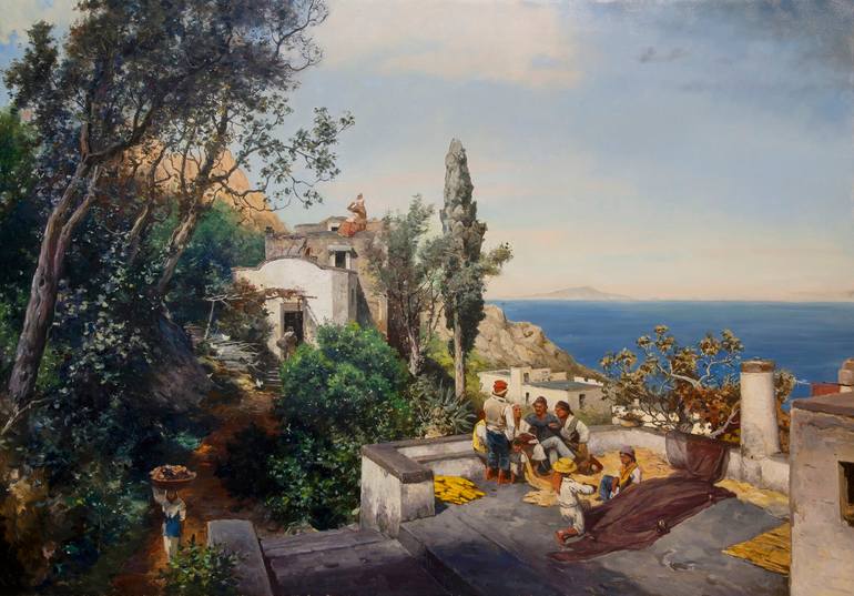 A copy of the painting. Oswald Achenbach. "Italian landscape. The coast is not far from Naples." Painting