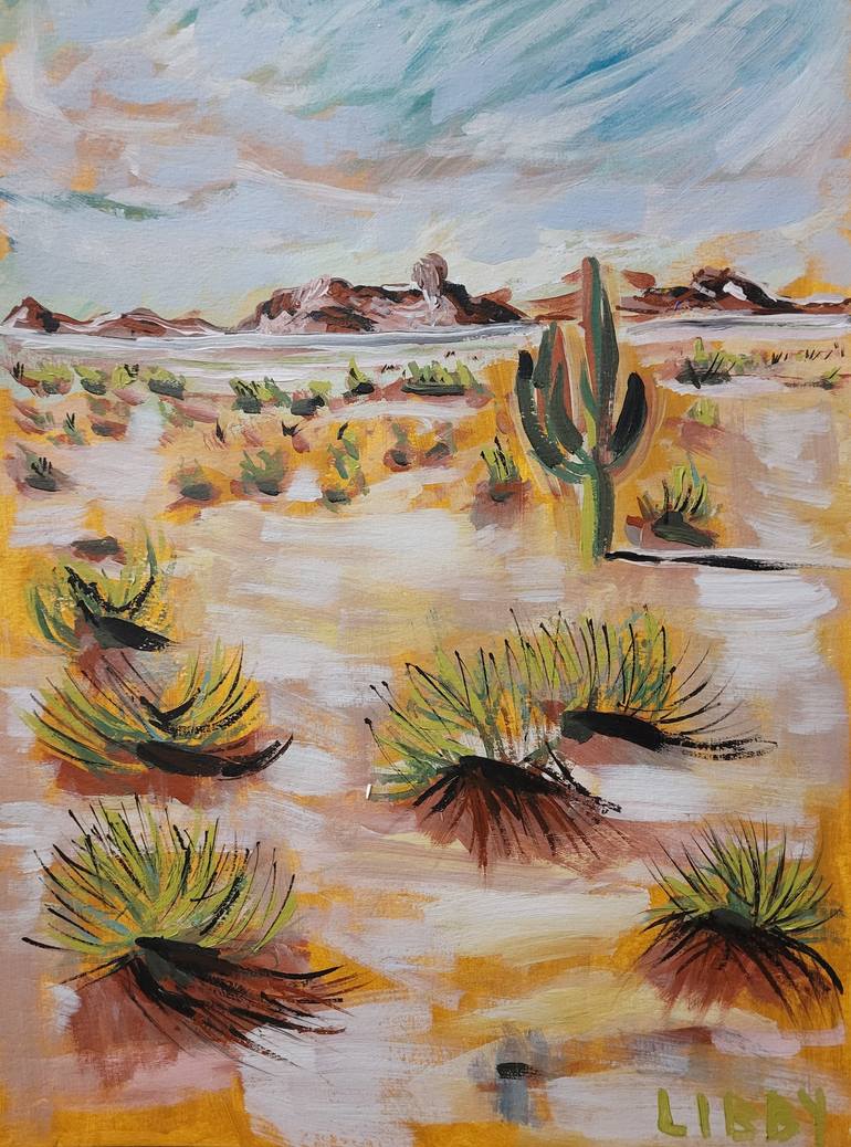 Title A desert with no boarders. Subject Landscape Category Painting Dimensions 11 W x 15 H x 0.1 D inches Mediums Acrylic Materials Paper