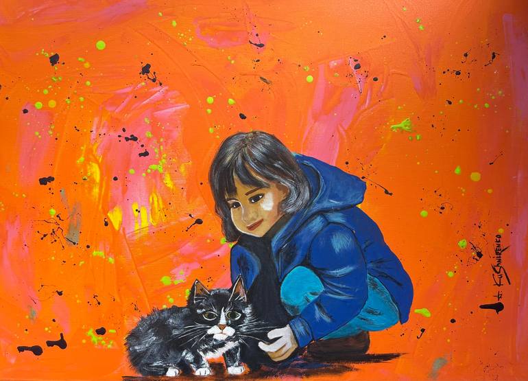 Someone took a small black kitten with white paws out of the house and put it on the road. The kitten sat there and meowed. But no one responded. It was all alone. The kitten froze. A little girl was running nearby, she heard the kitten meowing and was very happy. The kitten was frightened, it was ...