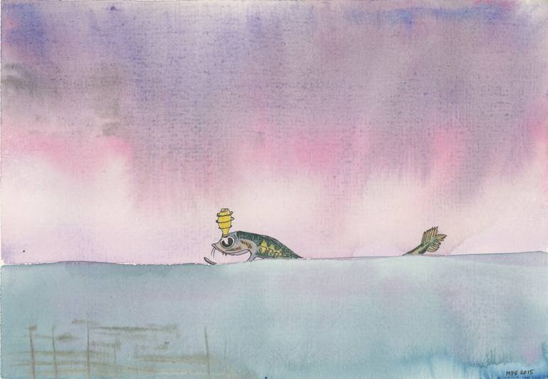 A watercolour painting of a lamp-fish. It is convenient to have a lamp on one's head when plunging into the depths. Original ships with a complimentary frame, ready to hang. Pencil in picture to give an idea of the size.