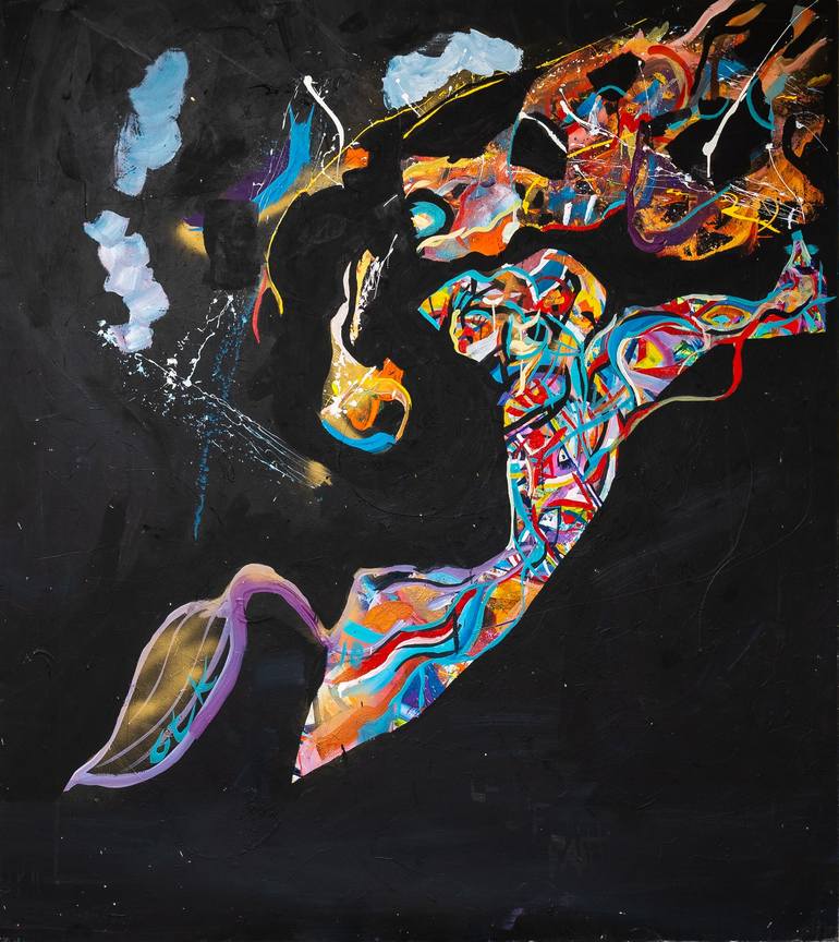 Creating art takes courage. This artwork is about this courage that is necessary to create, and it is based on the philosophy of Kierkegaard. I believe there is a limit to rational thinking and that true wisdom comes from intuitive knowing - this painting is an expression of this divine knowing that...
