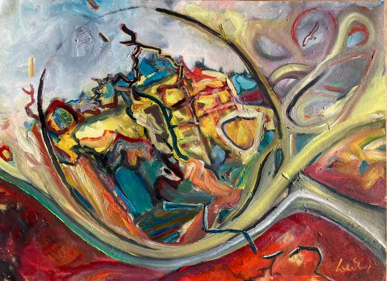 I would like people to find and enjoy mystery in my work, and in the minutiae of life that inspires it. I hope that my paintings will give rise to questions and unlock new adventures in the viewer's own imagination each time they look. Texture, memory and all the senses play their part in the stories each viewer will bring to a painting. Much of my work comes from being outdoors, walking, travelling by bus or by ship or by train, and the restlessness of the sea. Movement and energy are an important part of my work and of my creative process. I respond in colours and strokes to the shapes I encounter in the urban and natural world. The urban jungle encroaches even on my Island home, though I do still sense the exotic and the adventurous. The urban adventurer is on high alert each time she leaves her front door. There are always hazards to navigate, roadworks, rail strikes or floods. We are nervy like cats, wide-eyed and wary, while assuming an air of nonchalant boredom with all that impacts our senses. The world is an exciting and richly exotic place of adventure, both because of what we have made in it and because of what was already there in it. Travel, colour, movement and mystery are always present in my work.