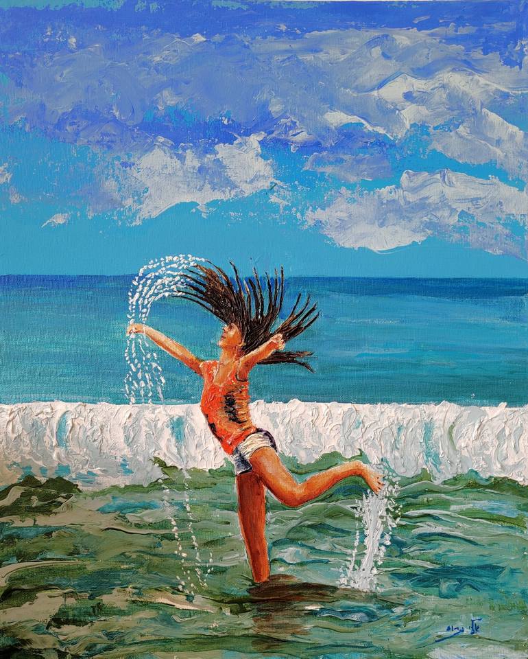 A spiral of energy, like leaves on the wind swirl around her - Acrylic.