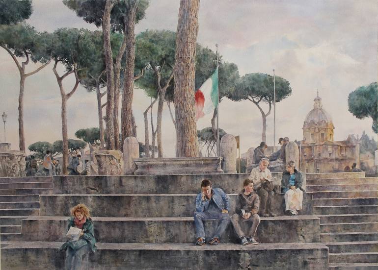 These ancient bus stops in Roma are just amazing. I am working without any mixed media and combines dry brush with wet watercolor surface.