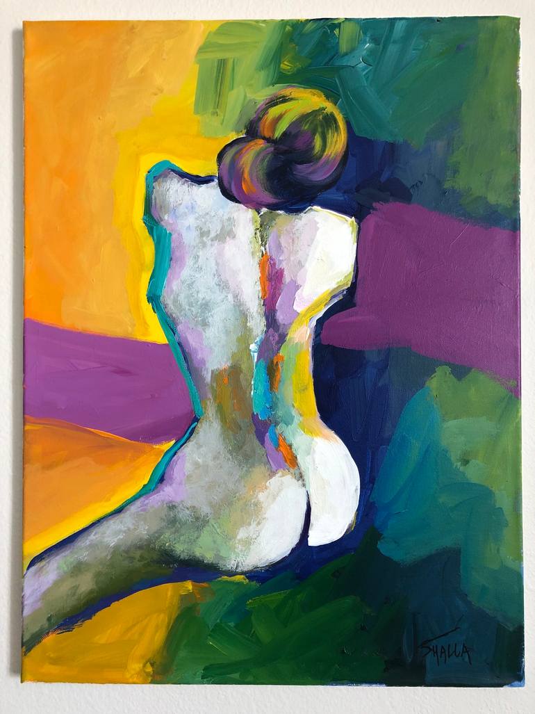 SUBJECT MATTER IS FIGURATIVE. THE STYLE IS TEXTURED ABSTRACT FIGURE. BRIGHT COLORS MAKES THE PAINTING CONTEMPORARY. I HOPE THE VIEWER FEEL THE SKILL OF MIXING COLORS
