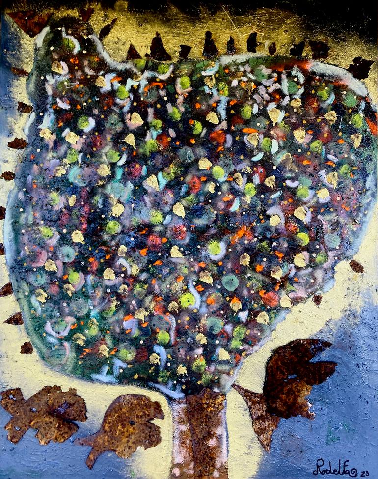 Artist Statement: When I paint I draw from the imaginary. I travel beyond logic and knowledge and create worlds that are beneath the oceans and above them, on solid ground and in the air, in the universe. Just like the leaves in the wind or in the air, in the water or above it. I see the world as a leaf. I become a leaf, a branch, a tree. I see the world as they see it, I see what they see in men and, especially, the men that love them. Over time I have developed a special bond with nature. I love her deeply and, in turn, she helps me paint, allows me to use her leaves, which become the instruments through which I create my paintings. It is as if nature painted and expressed herself through me and my art. Nature is part of me and of my paintings. When I finish a painting I think that it is a way of materializing the essence of the leaves and diffusing this essence to those who have never felt the wonderful sensations that nature can offer. I firmly believe that nature communicates with man through plants and I try to paint these messages, amplify them and disseminate them in the world. Biographical Information: Roberto Del Fabbro was born in Udine (Friuli) Italy on August 13th, 1954. Presently lives in Rome and Amelia (Umbria) in a small house surrounded by nature where he creates his paintings. Nature has always fascinated him. Even as a child he had a deep love for nature and growing up in Udine he was close to both the sea and to the mountains, where 2 months every year he would spend his summer vacation with his parents. In elementary school, he drew large flowers and trees on his math notebook. He loves traveling and discovering the world and its natural wonders in all its expressions. Lives a few years in Venice, the cradle of art, where he obtains a degree in architecture. Develops a passion for photography, always looking for new shots and situations, and in this moment of his life, Venice is an ideal location. Lives and works for a few years on the island of Crete (Greece) where he gets to know the local artists and assimilates from them the love of the sea and all its surroundings. Lives and works one year in Praslin, an island of the Seychelles, where the uncontaminated nature holds you in her embrace, dazzles, overpowers and makes you realize how nature is superior in every way to man.