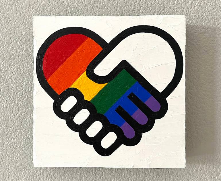 We wouldn't be where we are today without the love, support, and fight of our allies. Original painting "ALLIES," by artist Jackson Pschigoda. Acrylic on 8x8" wood panel. No need to frame as the panel is a thick 1.5." Ready to hang on wall or be placed on hard surface to enjoy this fun piece of art...