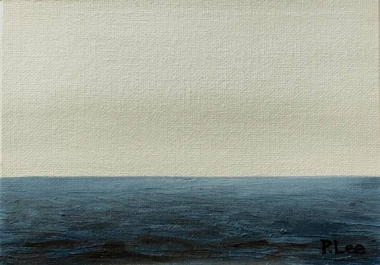 ANCIENT SEA Oil on board, 7 x 5 inches, 2020 During my travels in spacetime, I came upon a vast open sea. Was it on Earth? Was it on another planet? I can't say for sure. I do remember it was in the distant past. I should have taken better notes. Signed by the artist at lower right and on the back...