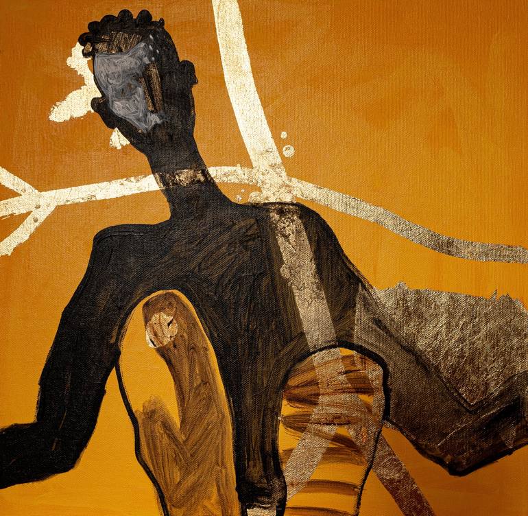 Mixed media painting on canvas (acrylic and gold leaf) with a glossy to matt acrylic finish. Inspired by cultural codes and the African paradigm Gold represents the immaterial and colour the physical. Canvas is a medium that has proved its resistance over time, which is why I chose it, as well as th...