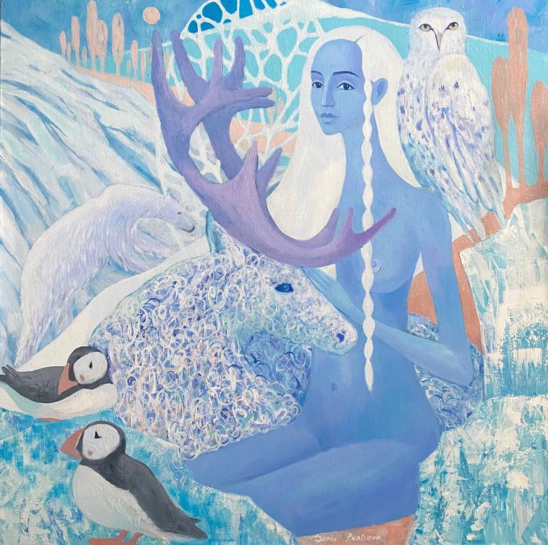 “Atlantis” Acrylic painting on the linen canvas 36 x 36 inches The artwork is sold unframed This artwork is devoted to the issue of climate change and risks of animals’ extinction on the cold parts of our planet, such as polar bears, reindeers, penguins and etc. I like collage way of organizing ...