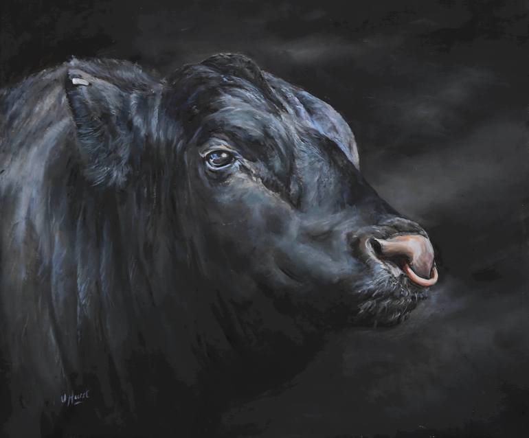 Original oil painting of an Aberdeen Angus bull. Angus Lowline. This was a top show animal at an agricultural show. Painted with Artist's quality oils on Italian linen canvas. 61 x 51 x 1.8 cm sold unframed. Signed on the front and will be accompanied by a Certificate of Authenticity.