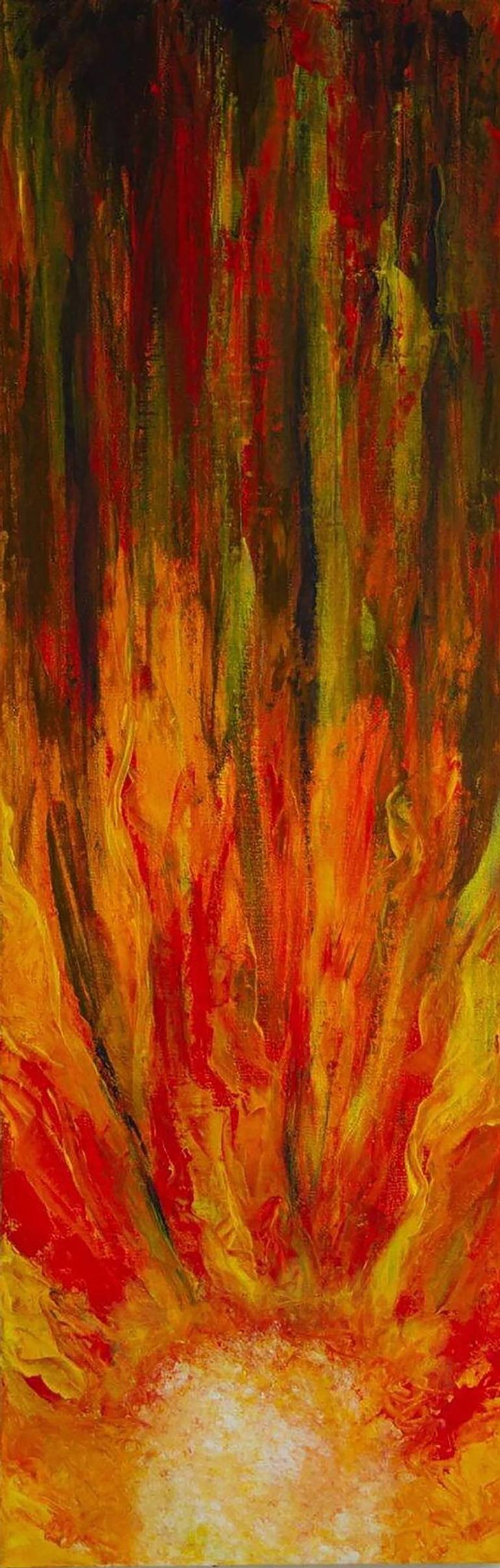 This creation boasts a striking mix of red, orange and yellow, representing the blaze of a fire. The bright yet deep colors bursts out energy and power, that is kindled from a core emanating from the bottom of the creation. The creator has deliberately designed the orientation with the objective of...