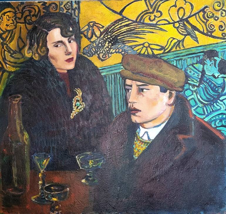 I create scenes of subtle intrigue or camaraderie inspired by the dynamics between people in pubs and in social gatherings, My paintings celebrate an old and decadent time with a dash of 1980's glamour.