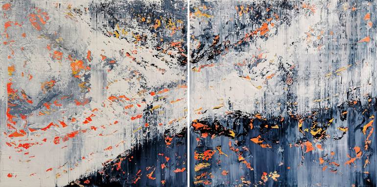 Title : Abstract 2256 . (Available for immediate shipping) Artist : Alex Senchenko © Size: 100cm x 100cm X 2 panels = 200cm x 100cm combined !!! MEDIUM: Professional Acrylic Paints . Professional Gallery Canvas. Original Painting on a 1 1/2 ( 4cm. ) Deep Ready to hang 2022