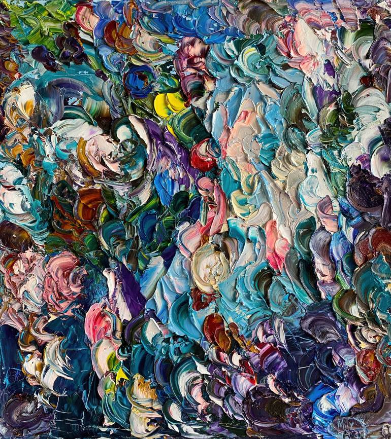"Abstract Impression" 45x50 cm | 17.7"x19.7" oil on canvas 2023 *Original oil painting on canvas *Mounted on Wood Stretcher frame *Ready to hang – the edges are painted, so no frame is needed *Shipped in a sturdy cardboard box with protective bubble wrap Discover the power of color and texture w...