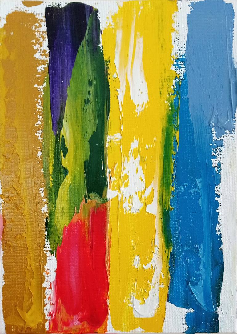 The Voice of the Artist I have often found myself reflecting on how emotions do not come gradually, but explode, layered and complex, like sudden washes of color on a silent surface. I took my small 5x7" canvas on cardboard and let my hands move instinctively. I started with the golden ochre and ble...