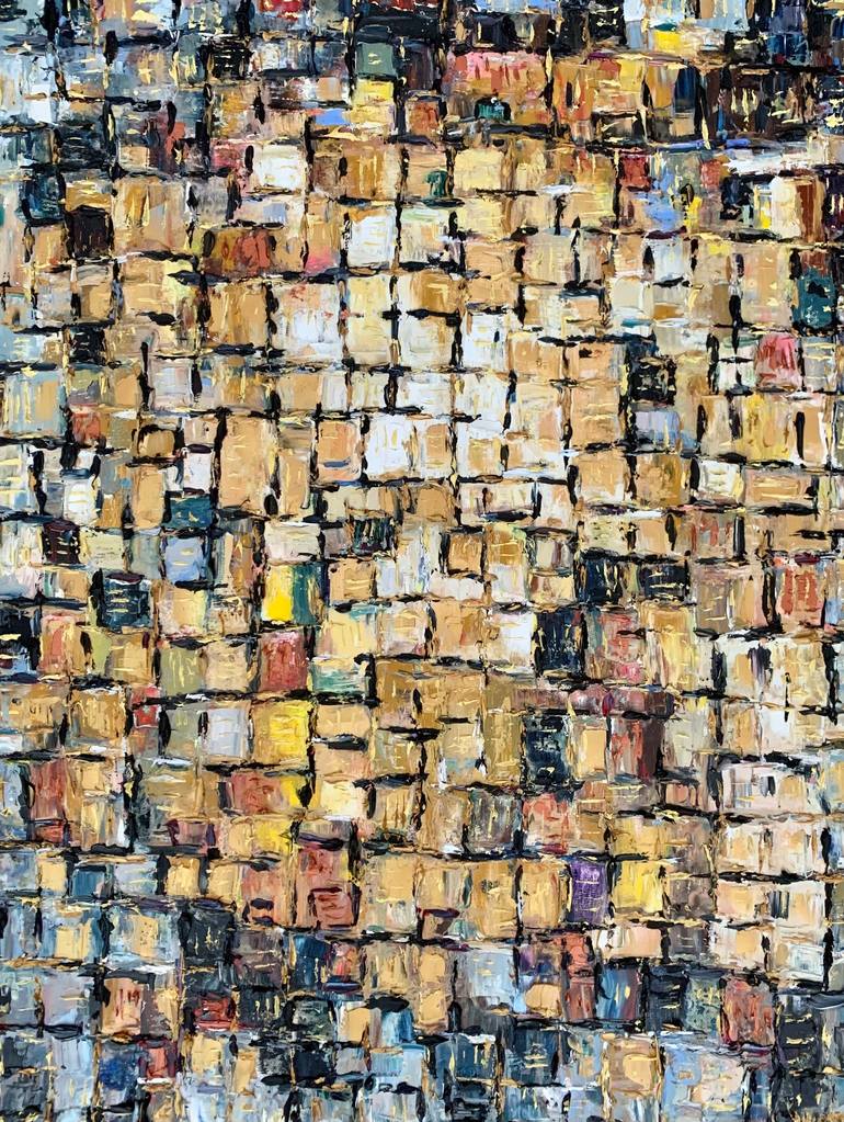 Abstract Mosaic Squares Impasto Oil Painting On Canvas *Title: „Imagination #XXVI“ *Size: 23.6"x31.5" [60x80 cm] *Original handmade oil painting on canvas by brush and palette knife. *Made by me - Vilma Gataveckiene. This is not a copy or a print. *Signature on the front and on the ba...