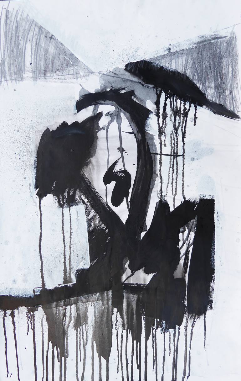 Abstract Nocturnal Landscape no.9 Painting on thick paper in acrylic, ink, graphite and charcoal Abstract based from the landscape Inspired by Ad Reinhardt, Robert Motherwell and Franz Kline.