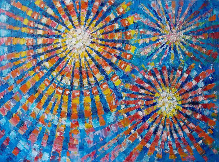 Everyone is delighted looking at the firework in the night sky. I wish everyone to experience delight in their souls more often! Celebrating yourself and your life! The painting was made with a palette knife. Impasto texture strokes. Materials used: stretched canvas, oil paints, palette knife. One ...