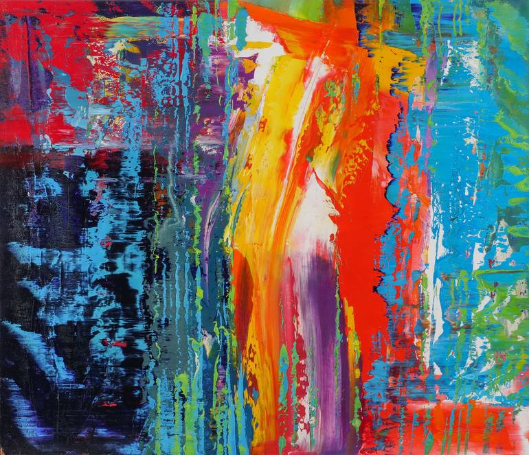 This is a multi-layered oil painting created with big palette knives, brushes and squeegees for a rich and varied texture. Some of the lower layers of paint remain visible, which gives the painting depth and three-dimensionality. The artwork is signed on the back. No frame is needed. The painting ar...