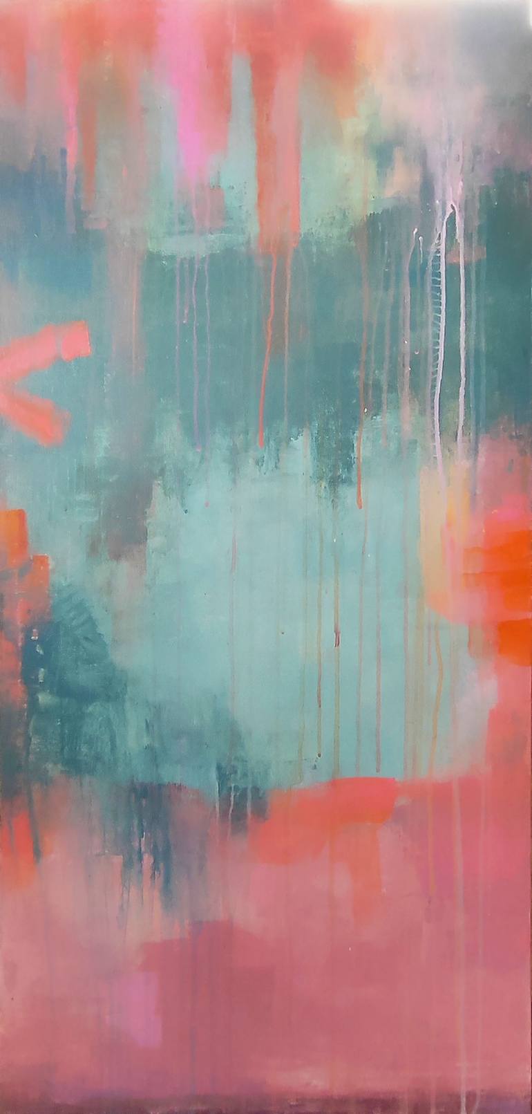 Abstract Grey & Pink acrylic canvas, inspired from the watercolor technique. Minimal, fresh painting that fits perfectly on big white walls.
