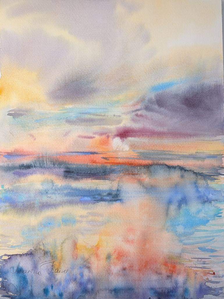 Welcome dear viewer to my art! Abstract seascape painted with watercolour on real handmade watercolour paper 300g, 36cm x 48 cm, is a brand new artwork and was created this morning.... Sometimes I paint abstract watercolour seascapes, there is almost no details...These paintings give my moods that n...