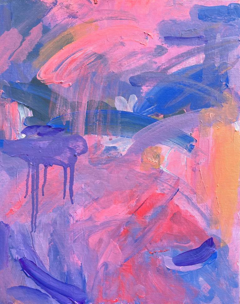 Abstract Sunset at the Sea. Acryllic on canvas on cardboard. Bright Rose and Violet colors, abstract painting.