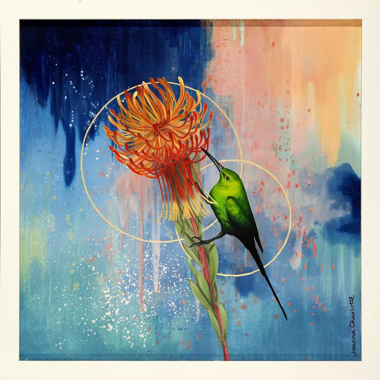 After the birth of my child and a short maternity break I was so eager to get back to painting that when I came to paint this series of work there was an explosion of energy and colour on the canvas. My work is often very controlled but I really enjoyed the immediacy of the colourful abstract backg...