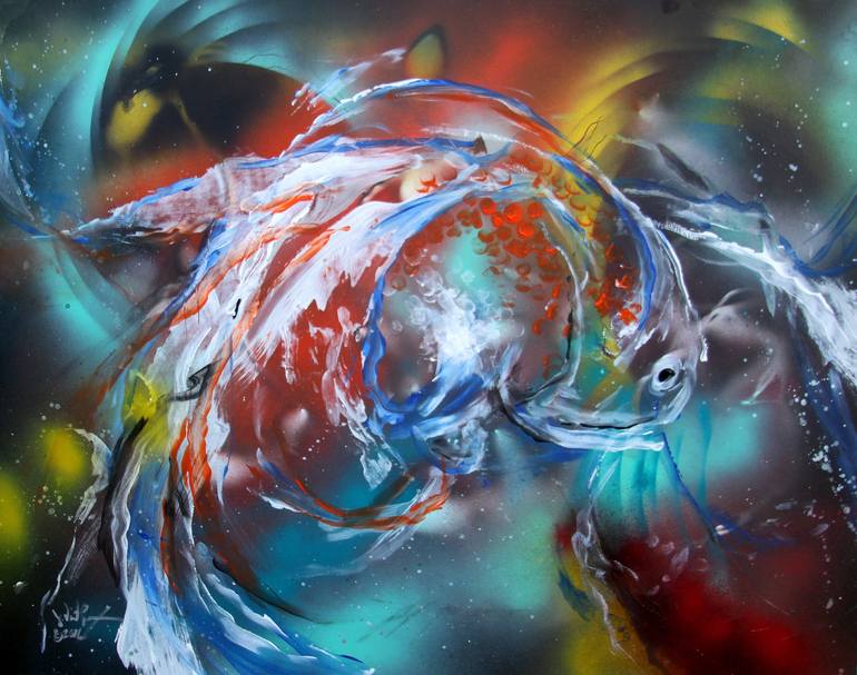 Steeped in abstraction, the fluid movement and slow flicking flutter of my goldfish inspired this dream-like, whimsical work.
