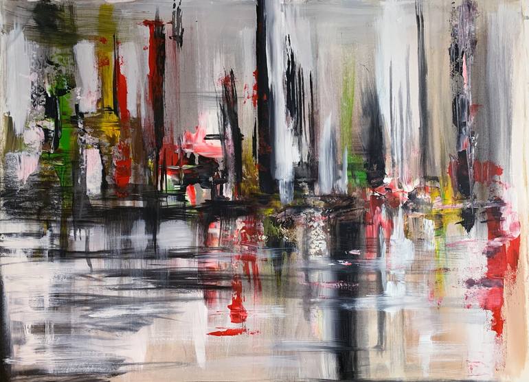 Abstract acrylic painting. Palette knife. Black, red, yellow, white. ►100% handmade acrylic painting on stretched canvas ►Dimensions: (unframed) 60 x 80cm. ►To see the details of the painting; please click "ZOOM" to enlarge the images. ►It is made in an abstract style by using mainly palette knife...