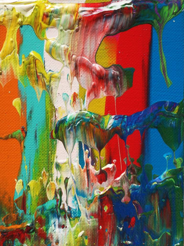 Abstract print D07309 colorful red green yellow rainbow abstract wall art painting by Ksavera Painting by Ksavera Art