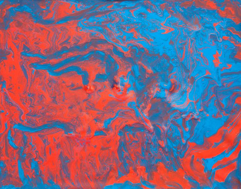 Abstract painting, in red and blue colours.acrylic on not streched canvas, ships in a tube. Picture is painted in special technique Fluid art, also named Pour art, liquid art and marble art. All pictures in this technique are unique and can't be repeated. Picture can be placed on the wall in any o...