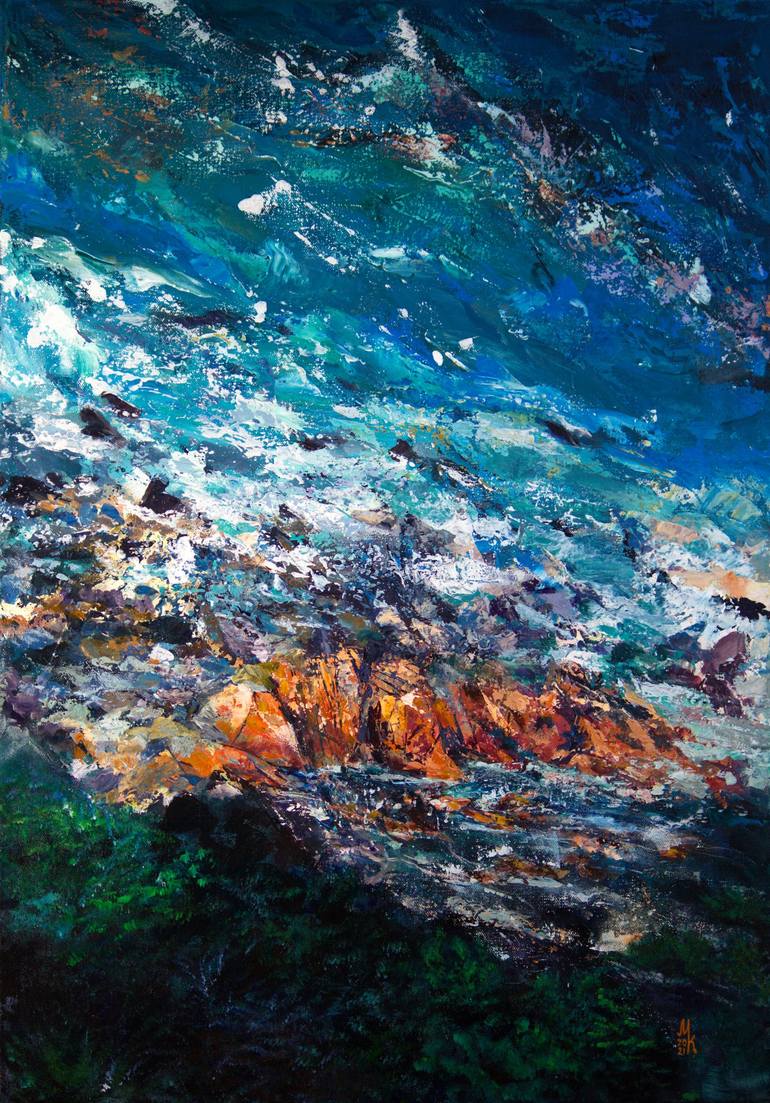 My bird's eye seascape and landscape series. These are "shots" that even at the end of my life I would show God as a story about the beauty of the Earth, which I was lucky and grateful to see. I love acrylic for its brightness and environmental friendliness, so I definitely used this kind of medium...