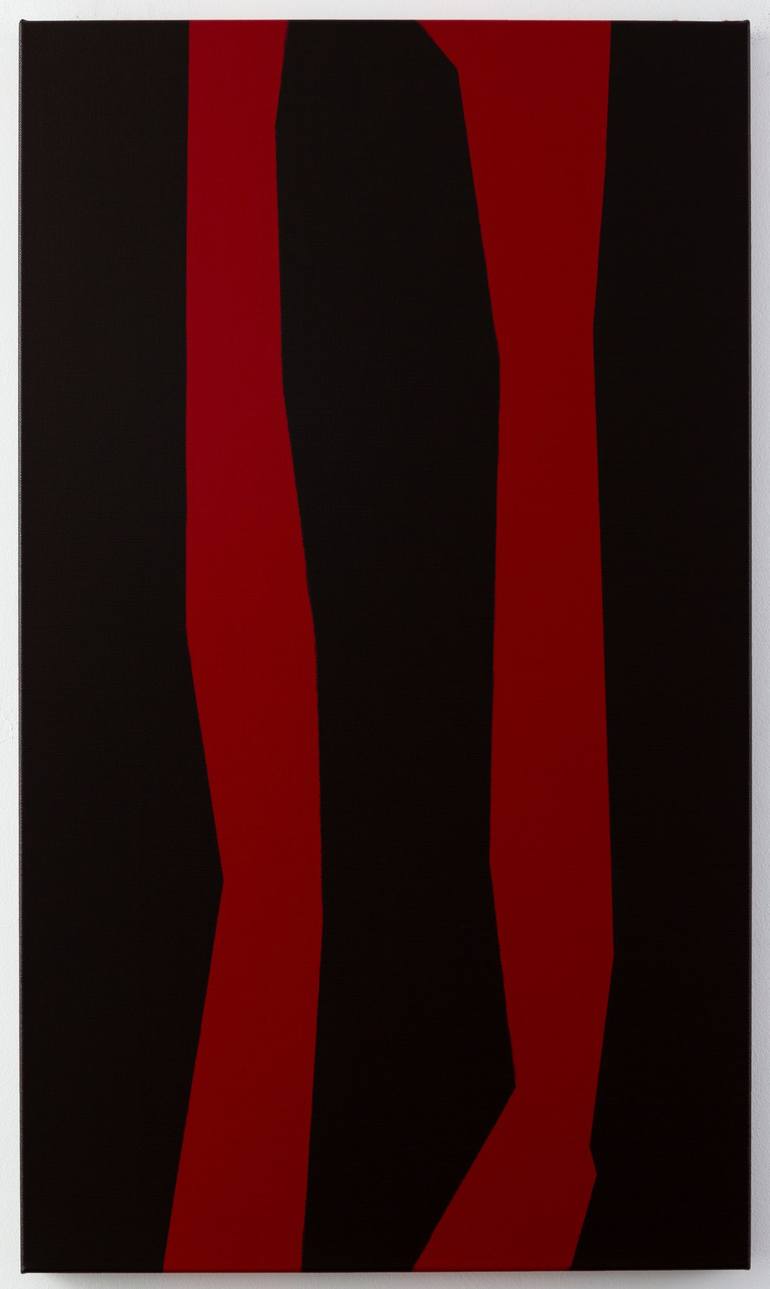 This geometric striped colorfield painting is painted with dark ruby red highest quality pigments and glazed with equally black pigments in a special watery thin acrylic dispersion, so that the dark shapes becomes dark reddish brown. The reduced geometric minimalistc composition favors the perceptio...