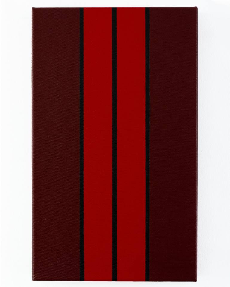 This geometric striped colorfield painting is painted with red purple an red brown (caput mortuum) highest quality pigments in a special watery thin acrylic dispersion. The reduced geometric minimalistc composition favors the perception of the colors. Although the painting has multiple thin layers,...