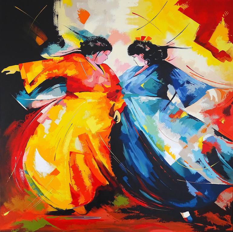 In this exuberant expression of joy and movement, my paintbrush dances across the canvas much like the figures within it, swaying with the rhythms of life. Vibrant acrylics in a symphony of reds, blues, and yellows capture a moment of pure, uninhibited emotion. Each stroke is deliberate yet carefree...