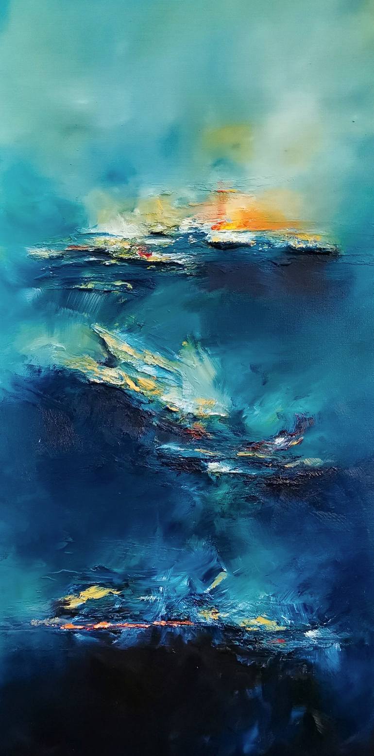 Always inspired by Zao wou Ki's work and his shades of blue, "Abysse" create a deep movement going down into abysses. The relief created by concrete helps to accentuate the contrast between light and shadow. From light to shadow, the strenght of oil painting to moderate gradient and reinforce colou...