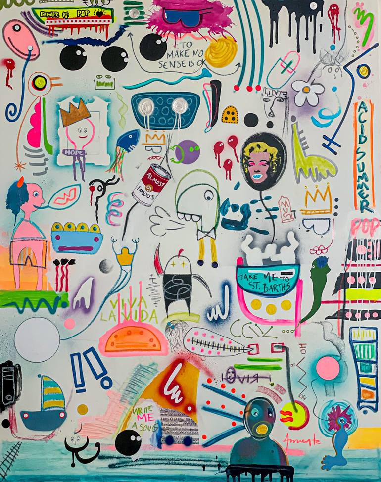 Born in 1985 in Culiacan, Mexico, Armenta started painting since 10 years old and become a student in fine arts in Accademia D’Arte Firenze in 2004. He is a Knife & Experimental painter who is famous for painting vibrant and colorful portraits of unknown people and abstracts paintings. Arrmentta uses knives, hands and everything he can use to paint his artwork as he seems to prefer different techniques using a mix of basic mediums and industrial materials. For him, painting is an intense experience, desirable and formidable. It's a combination of conflicting and complementary internal movements; excitement, anxiety, pleasure, vertigo, attraction, doubt and acceleration. Armenta's work could be described as adventurous, since it includes various techniques. Such is the case of watercolors, experiments with alcohol, gasoline and other industrial materials, among others. Also, his styles range from drawings, figurative, collages and accidental compositions to playful abstractions, whether expressionist, naive or semi-geometric. It should be noted that the manifestation of an aqueous or diluted character is explicit in its oils and acrylics. In that way we observe areas of the canvas with intentional washes or gradients that contrast with the paint in its purest form. These visual effects provide the canvas with harmonic lights and shadows inspired by the leaves of moisture in nature. Layer after layer we can follow closely the creative process of the artist, the reactions of the components, the combinations of yellows, blues, reds and their derived colors, as well as the encounter of indefinite forms and unintentional contours, which simply happen and they color each other. The artist does not seek to draw or figure anything in his pieces, rather it emulates, with attractive tonalities, the dynamic flow of water, of life. However, these natural movements have alterations, sudden changes and pauses, hence his reflexive abstraction, which leads us to think of the painting as an area where both predictable and unexpected arise. That surprising aspect of his art manifests itself more strongly in his expressionist paintings, completely gestural, which includes certain vertiginous portraits with darker palettes. We also appreciate the recreation of colorful characters, apparently flat, with their heads bowed, with defined parts and others half defined, but also expressive and with exaggerated features.