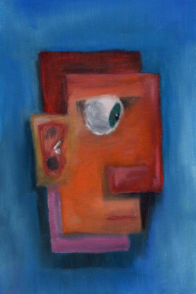 An abstract profile of a square-jawed person. Part of the "acorn grimace" series