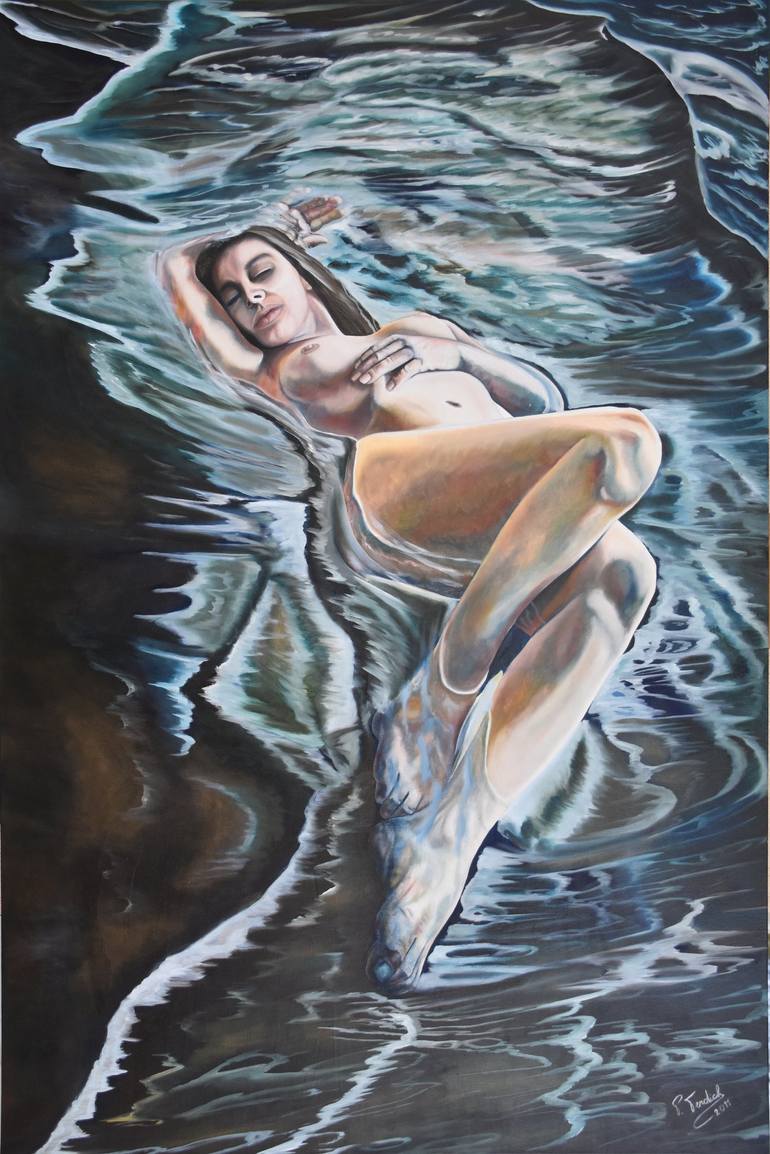 Born in Piacenza (Italy), where, after having lived in various Countries, I currently live and work, I am in a constant creative challenge to make tangible in my paintings the human feelings. My works were exhibited worldwide and have been acquired by numerous private collectors, galleries, art institutions. In 2022, I have been invited to exhibit at the 59th Biennale Arte di Venezia, in the Granada National Pavilion, and I had a solo exhibition in New York. Some of my works won numerous international prizes and my activity has been reviewed and published in various art magazines and books. I am also a co-founder of the artist group “Eoykos”, composed by six Italian artists of figurative expression. This Movement was created (in 2011), to eventually demonstrate, in equilibrium between Surrealism and Metaphysics, that figurative art is still a privileged mean of communication, aimed at transmitting human emotions. My favorite subjects are human figures represented in situations of intimacy and solitude, in metaphysical and surreal atmospheres, both in confined environments, where their inner torment is expressed, and in aquatic environments, from which a profound sense of quiet emerges. The aim is to render detailed figurative subjects, characterized by luminous surfaces and compelling images that offer a combination of disquiet, uncertainty, urgency, calm, and spirituality. Meditative in tone, I also try to exalt the light, to obtain paintings pervaded by uncommon atmospheres and shot with an evanescent brightness. Although my works are often associated with hyperrealism, I am not particularly interested in the mere representation of the real. My expression is aimed, instead, at recreating atmospheres that lead beyond the visible, to penetrate the inner world of emotions. Accordingly, the figures, rather dynamic, are suspended in a surreal atmosphere, with a post-impressionistic dim light. My realism is, hence, silent, intimate, containing an unspoken, mysterious narrative, which offers psychologically loaded presentations. This atmosphere has been, finally, emphasized in the works “waters”, where natural light and filtered light breaks the subjects in a multitude of dynamic reflections. Within such balance, the human beings seem to live in a precarious balance that belongs to peace, harmony and beauty.