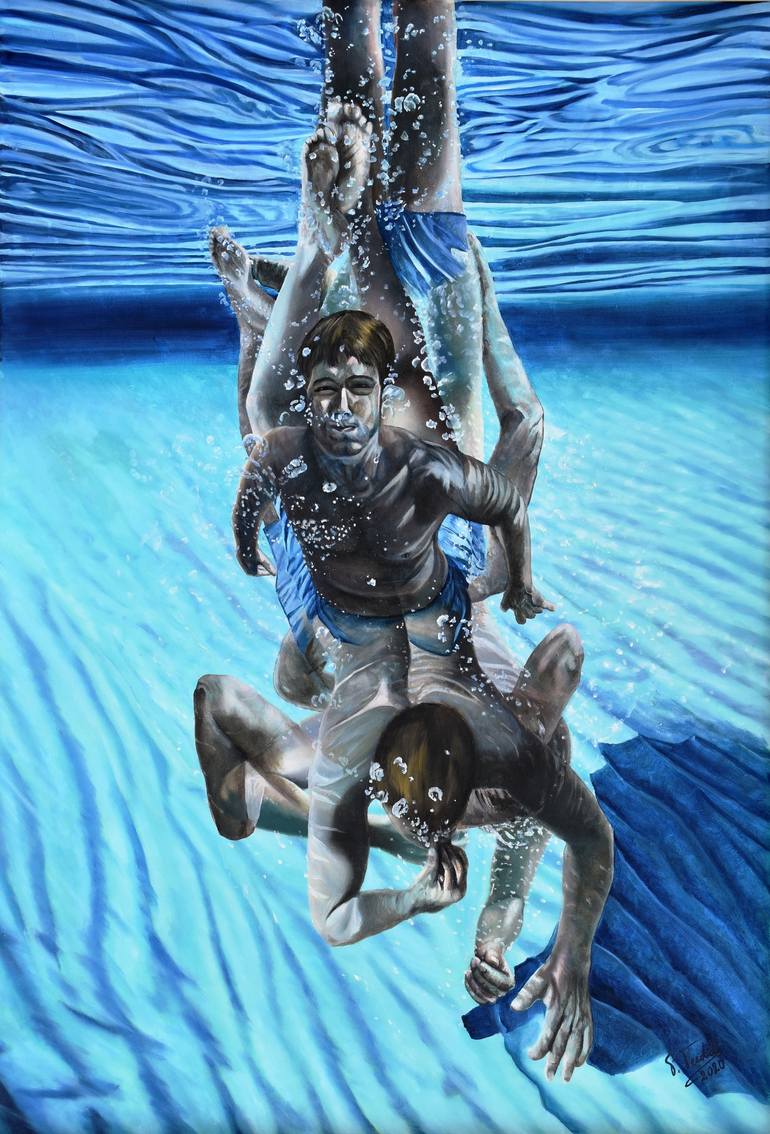 Born in Piacenza (Italy), where, after having lived in various Countries, I currently live and work, I am in a constant creative challenge to make tangible in my paintings the human feelings. My works were exhibited worldwide and have been acquired by numerous private collectors, galleries, art institutions. In 2022, I have been invited to exhibit at the 59th Biennale Arte di Venezia, in the Granada National Pavilion, and I had a solo exhibition in New York. Some of my works won numerous international prizes and my activity has been reviewed and published in various art magazines and books. I am also a co-founder of the artist group “Eoykos”, composed by six Italian artists of figurative expression. This Movement was created (in 2011), to eventually demonstrate, in equilibrium between Surrealism and Metaphysics, that figurative art is still a privileged mean of communication, aimed at transmitting human emotions. My favorite subjects are human figures represented in situations of intimacy and solitude, in metaphysical and surreal atmospheres, both in confined environments, where their inner torment is expressed, and in aquatic environments, from which a profound sense of quiet emerges. The aim is to render detailed figurative subjects, characterized by luminous surfaces and compelling images that offer a combination of disquiet, uncertainty, urgency, calm, and spirituality. Meditative in tone, I also try to exalt the light, to obtain paintings pervaded by uncommon atmospheres and shot with an evanescent brightness. Although my works are often associated with hyperrealism, I am not particularly interested in the mere representation of the real. My expression is aimed, instead, at recreating atmospheres that lead beyond the visible, to penetrate the inner world of emotions. Accordingly, the figures, rather dynamic, are suspended in a surreal atmosphere, with a post-impressionistic dim light. My realism is, hence, silent, intimate, containing an unspoken, mysterious narrative, which offers psychologically loaded presentations. This atmosphere has been, finally, emphasized in the works “waters”, where natural light and filtered light breaks the subjects in a multitude of dynamic reflections. Within such balance, the human beings seem to live in a precarious balance that belongs to peace, harmony and beauty.